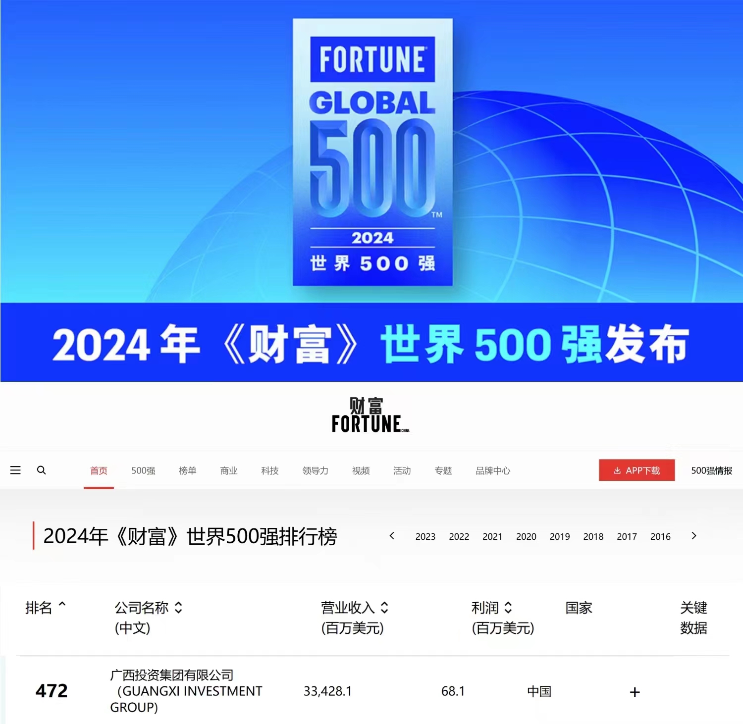 广西投资集团第五次上榜 《财富》世界500强